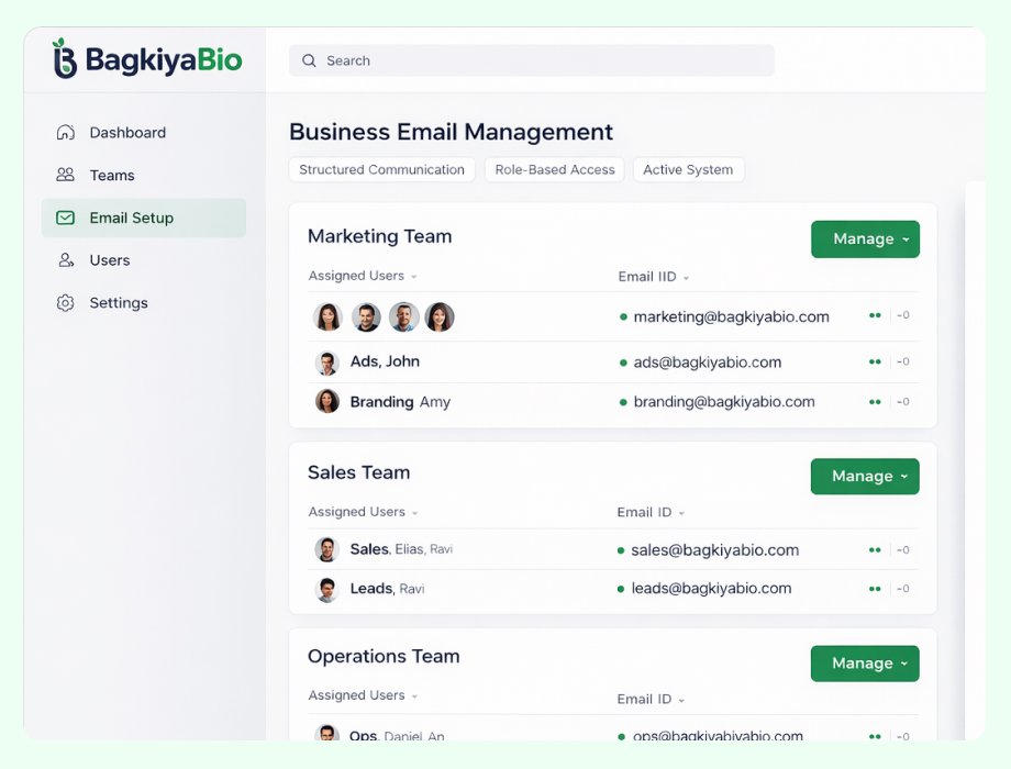 - Business email setup for each team and individual
